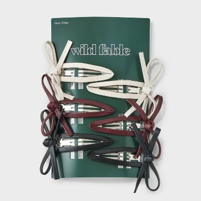 6-Piece hair clip set includes brown, black and white hair clips. Adorned with faux leather bows for a beautiful look. Great for styling and suitable for all hair types.