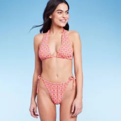 Women’s Ultra High Leg Adjustable Coverage Bikini Bottom – Wild Fable⢠Orange Tile Print