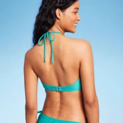 Multicolor bralette bikini top from Wild Fable™ features crochet detailing and colorful beads at the center. Soft and stretchy fabric for comfortable wear. The halter neck design and back hook-and-loop fastener helps keep the top secure. Removable cups offer customizable coverage.